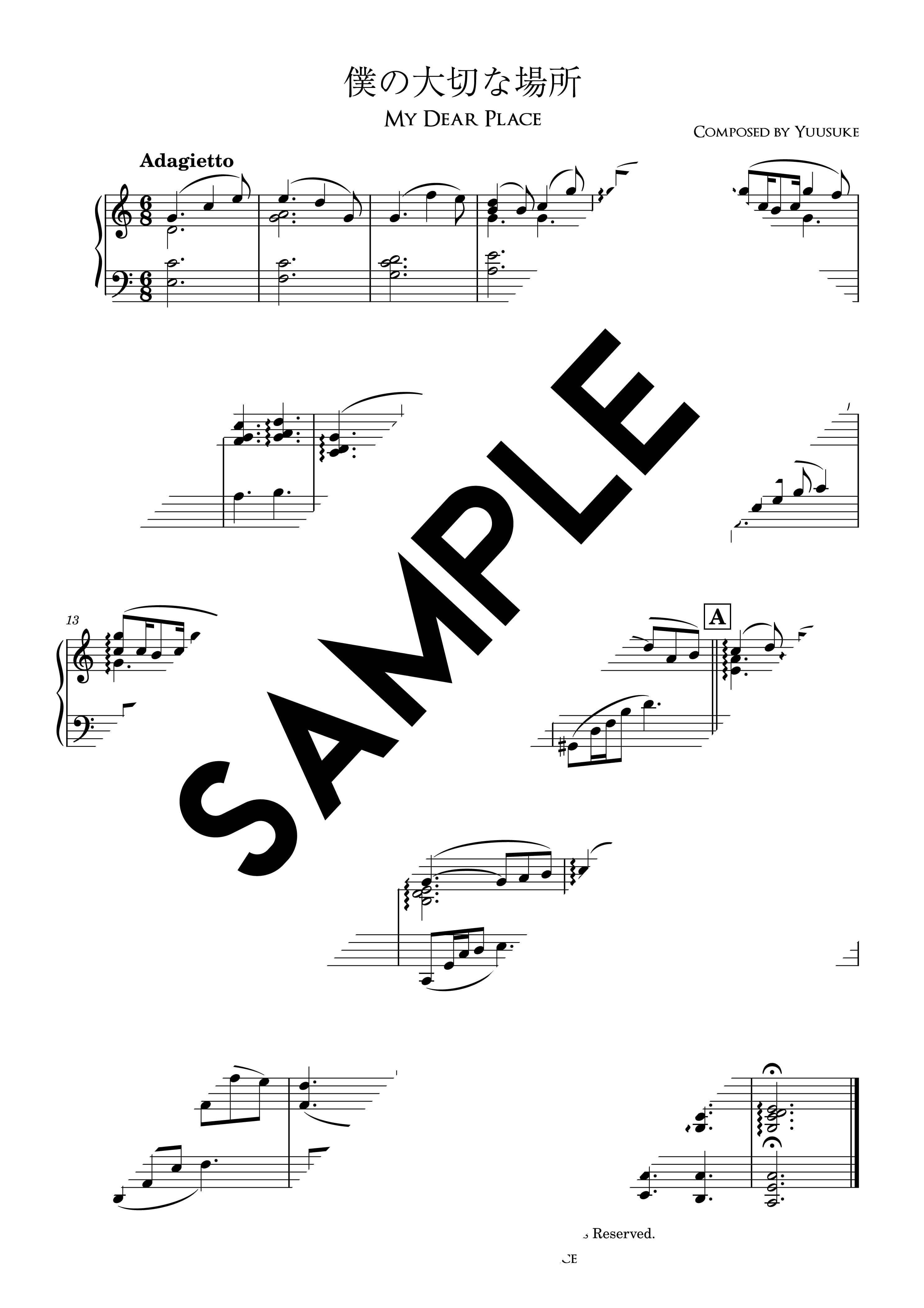 【楽譜PDF】僕の大切な場所・ピアノソロ楽譜/"My Dear Place" Peaceful Piano Musical Score 010